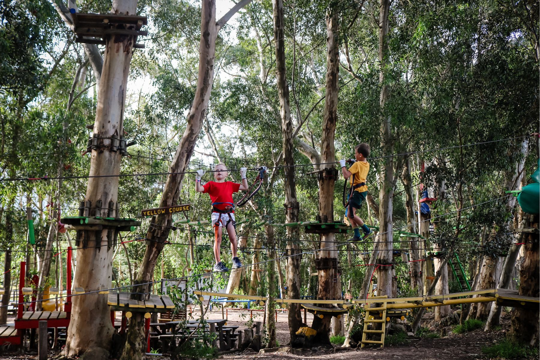 Situated on a beautiful farm just 17 km from N1 Garsfontein offramp, lies Acrobranch Garsfontein. Easily accessible, Acrobranch Garsfontein offers the perfect outdoor adventure for those wanting to break away from the rat race. With four exhilarating tree-top Adventure courses and a range of difficulty levels, Acrobranch Garsfontein caters to both the young, old, and the experienced, from individuals to groups. Acrobranch Garsfontein is ideal for kids & adult birthday parties. Invite your tribe to climb, swing, balance and explore their way around our 4 adrenaline-packed courses. We also propose great packages for a different type of team-building activity, one that will create an unforgettable and awesome experience for your colleagues and employees! We will tailor the day to suit your needs and your budget. Contact us today for an estimate! Not only is our adventures all-around fun, but it is a great activity to build confidence and coordination. Slide, balance, jump, crawl, dash, swing, or stroll our courses will test your physical ability, brainpower, and balancing skills. It is a wonderful way to get those muscles and minds working in a beautiful and peaceful outdoor setting. Our experienced instructors will keep a watch over things, ready to jump in if a helping hand is needed. For our younger adrenaline enthusiasts, Garsfontein features the Acrotwigs-bungee. An activity that will have little ones safely soaring 10 meters high; facilitated by both a harness as well as a trampoline.